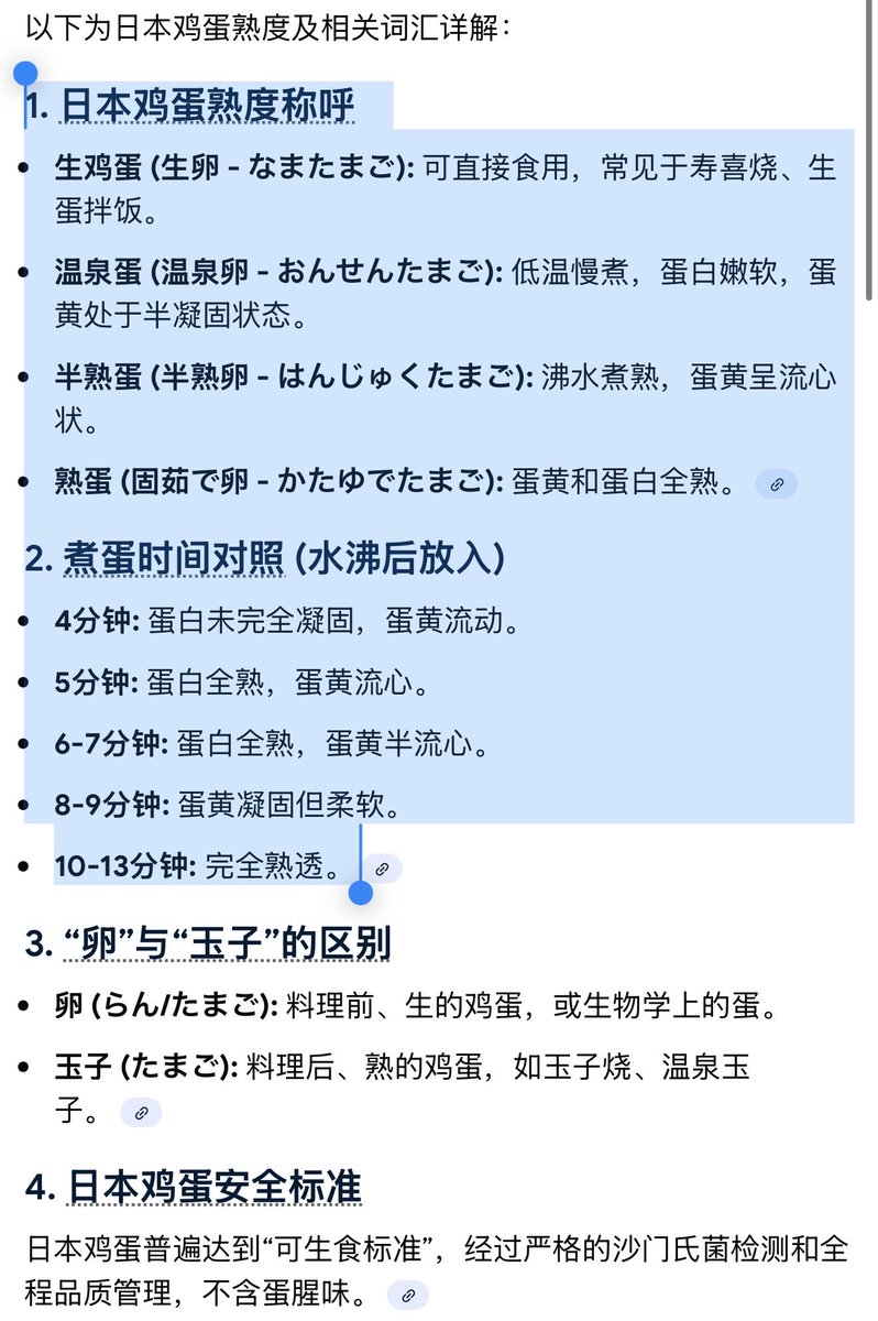 日本人对鸡蛋的研究真的太疯狂了,不但超市里所有卖的鸡蛋都达到直接生吃的标准,而且还对鸡蛋熟度进行了非常详细的研究与区分,甚至成为亚洲国家的事实标准 咱们中国人虽然最近30年也吃得起鸡蛋了,但恐怕并不知道鸡蛋该怎么正确的煮,正确的吃 正如兰州拉面、绿茶一样。全都是暴殄天物