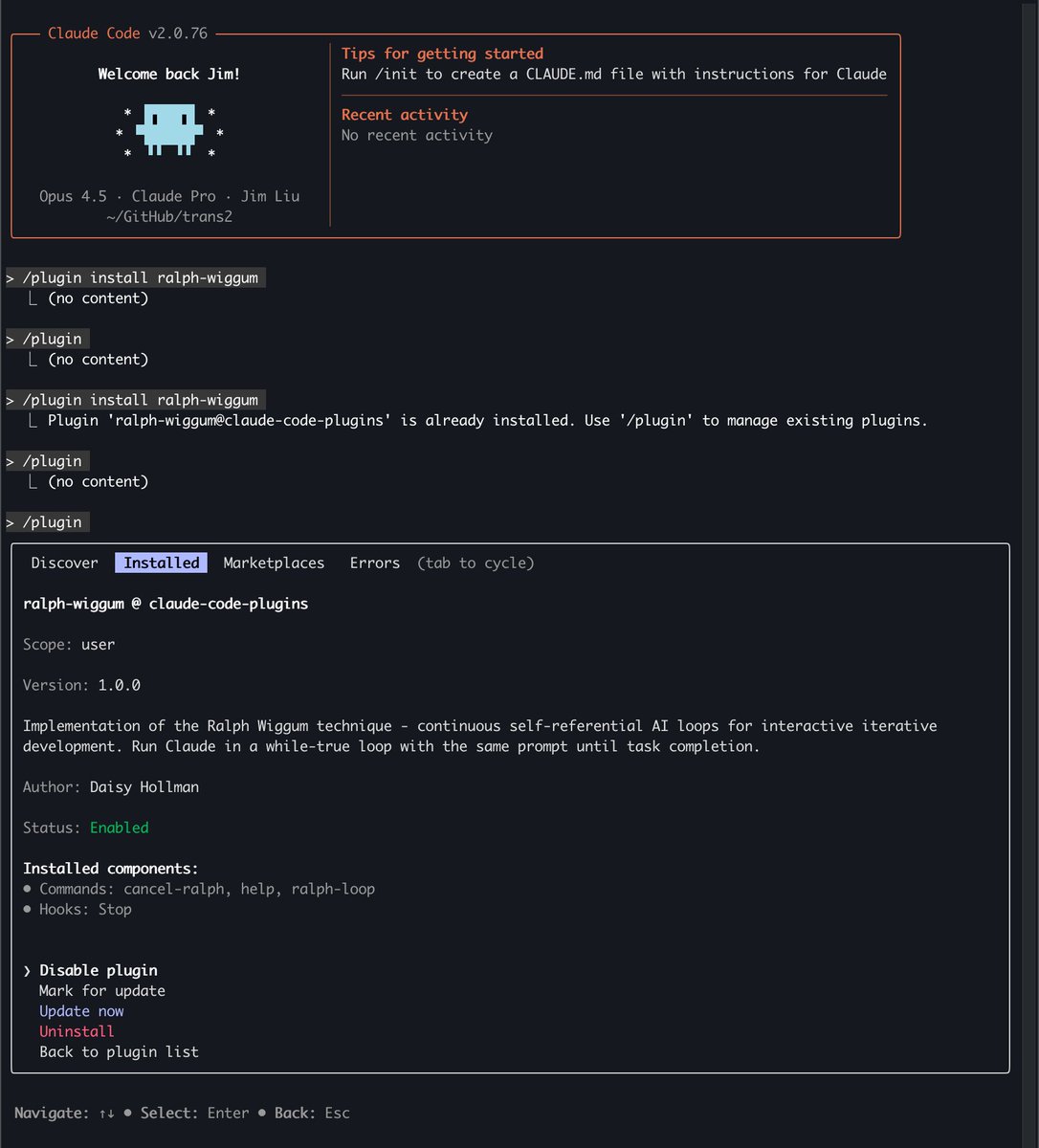 Ralph Wiggum 插件:让 Claude Code “通宵干活” Ralph 就是一个让 Claude 自己跟自己对话的循环——你下班回家,它替你加班,醒来代码写好了。 核心原理 传统用法:你给 Claude 一个任务 → Claude 完成 → 退出 → 你再手动启动下一轮。 Ralph 用法: ```bash /ralph-loop "你的任务描述"