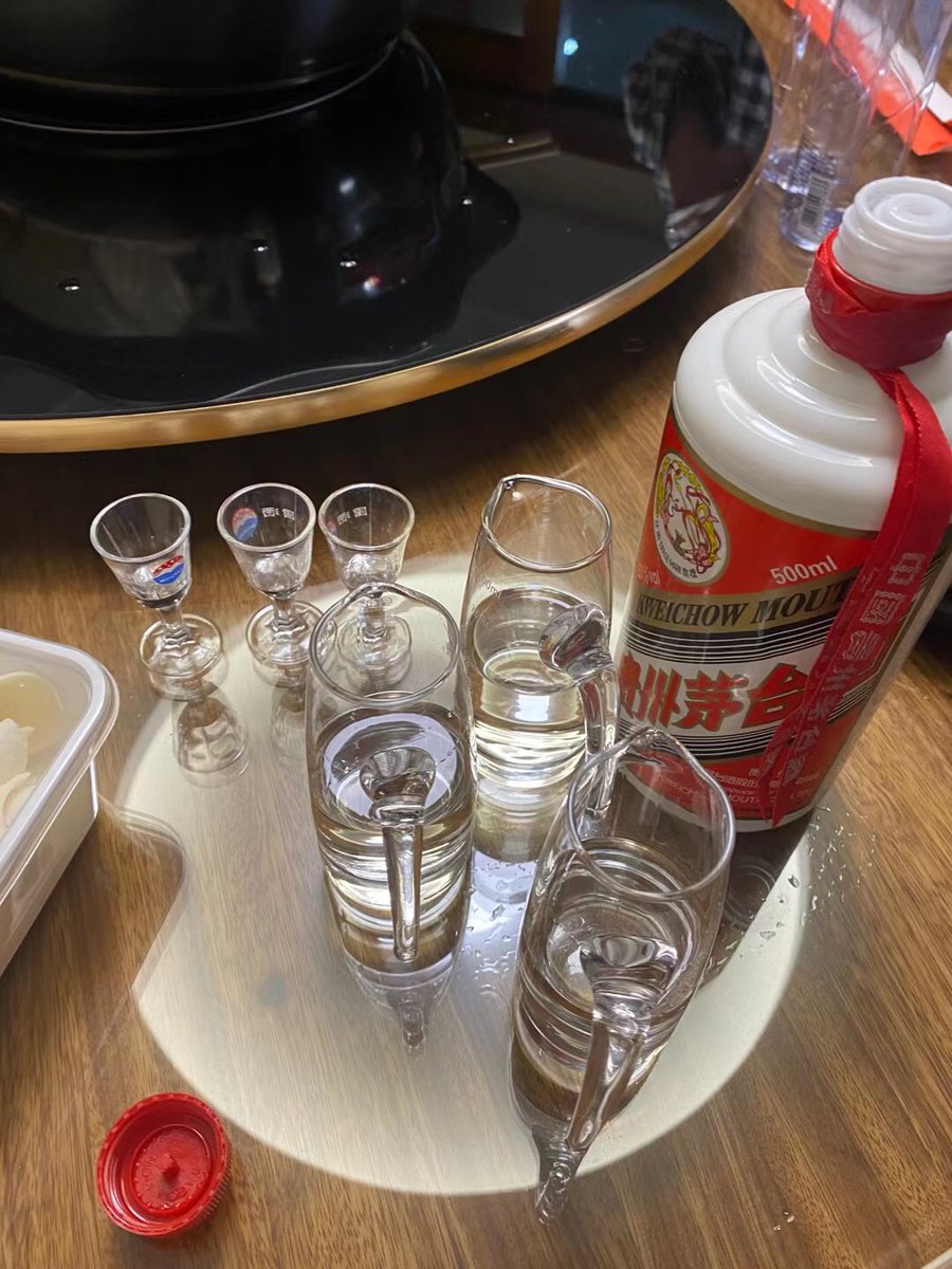 海底捞外卖加上1776年的产自波士顿的茅台酒,为建国同志接风洗尘!