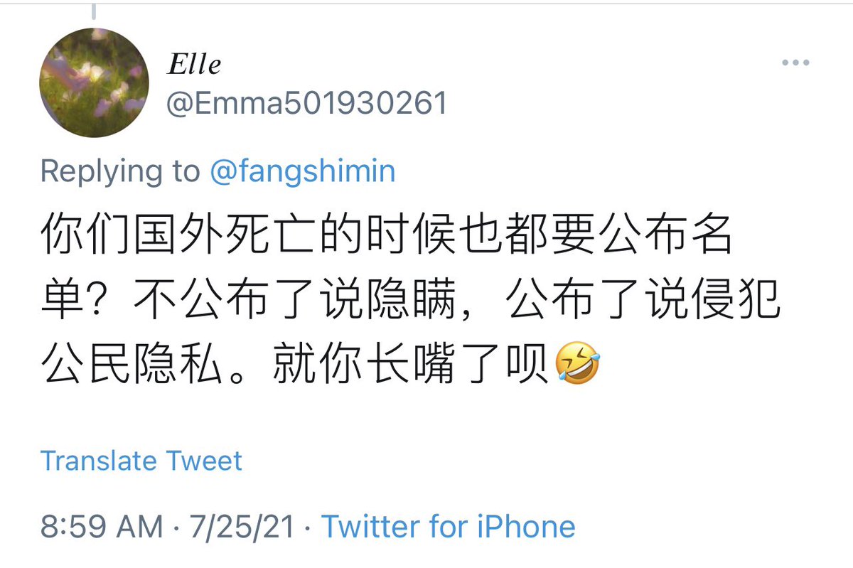 公布死难者名单是国际惯例,只有墙内隐瞒灾情者才会想出“侵犯隐私”的弱智借口。让翻墙水军见识见识,迈阿密塌楼所有死难者名字、年龄甚至住的房间都标得清清楚楚,目前还有一个失踪者的尸体没找到,要把废墟再过一遍。