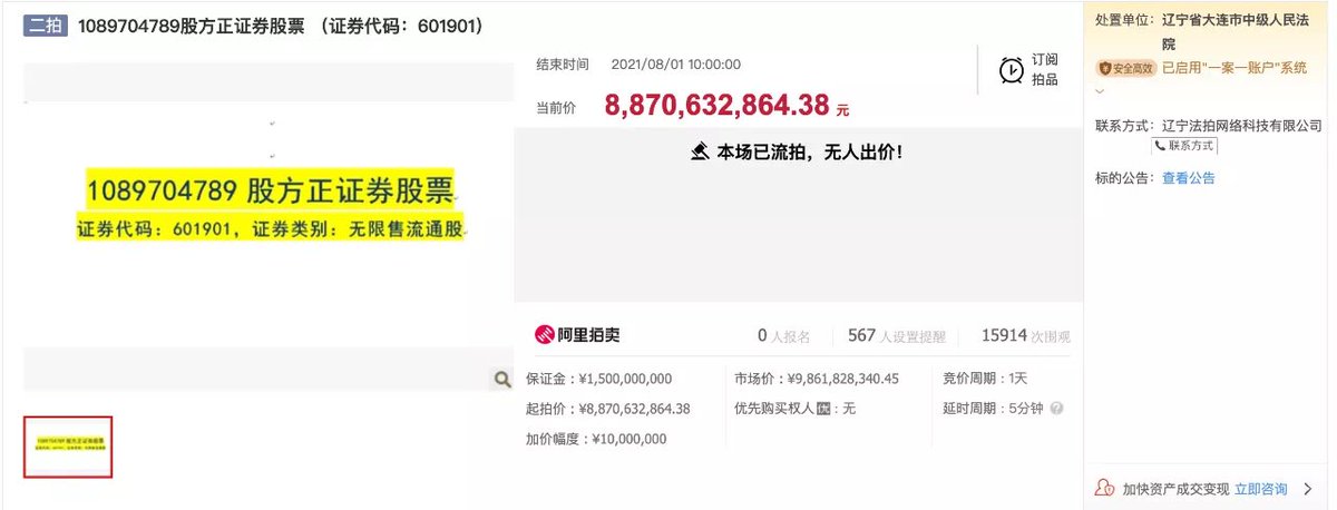 时隔两个多月,8月1日方正证券股权拍卖遭遇二度流拍,政泉控股持有的10.9亿股迟迟未能找到人“接盘”,坊间推测的中国平安和中国信达都没有出手。