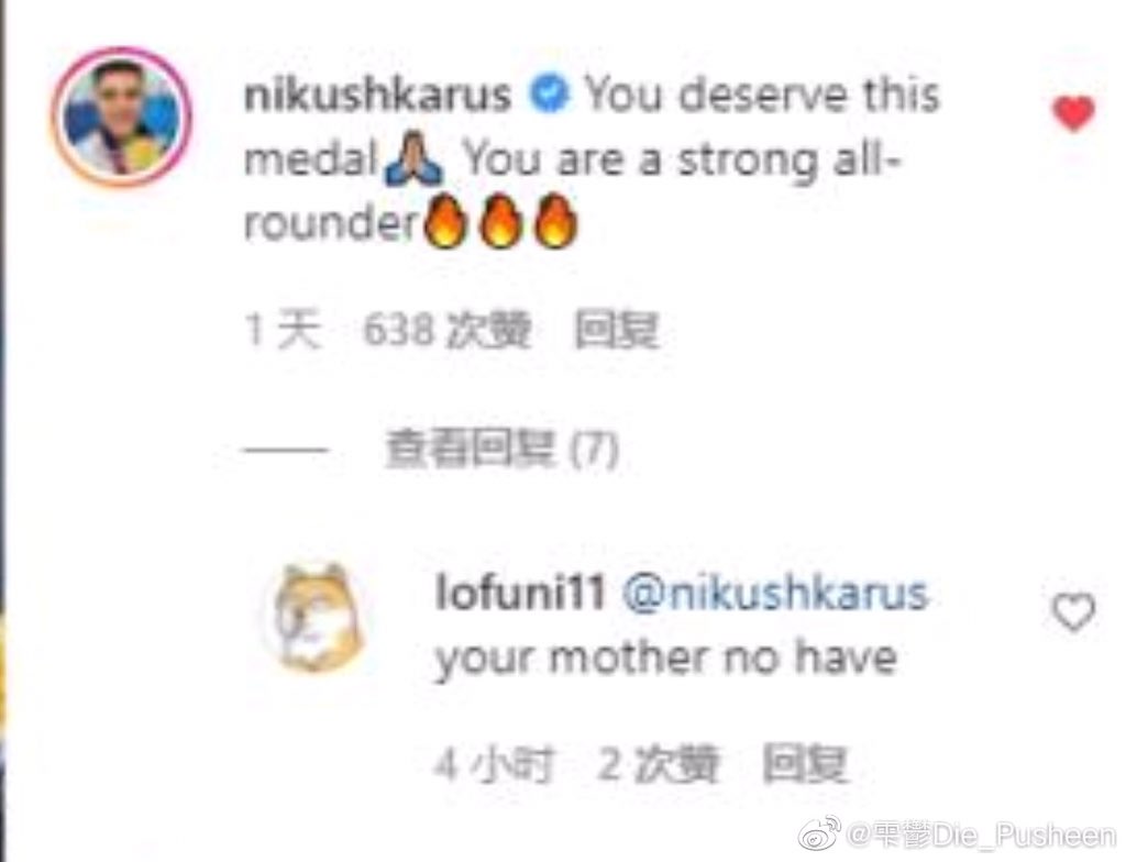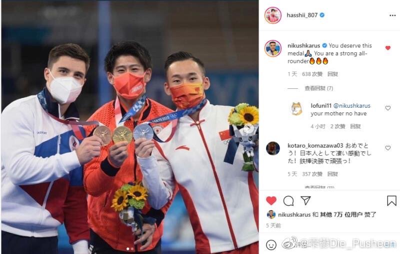 墙国人跑到俄国体操铜牌得主下面的留言️因为人家祝贺了桥本得金牌Your mother no have 我翻译回去“你妈没了”