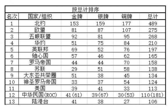 金牌可以这样统计