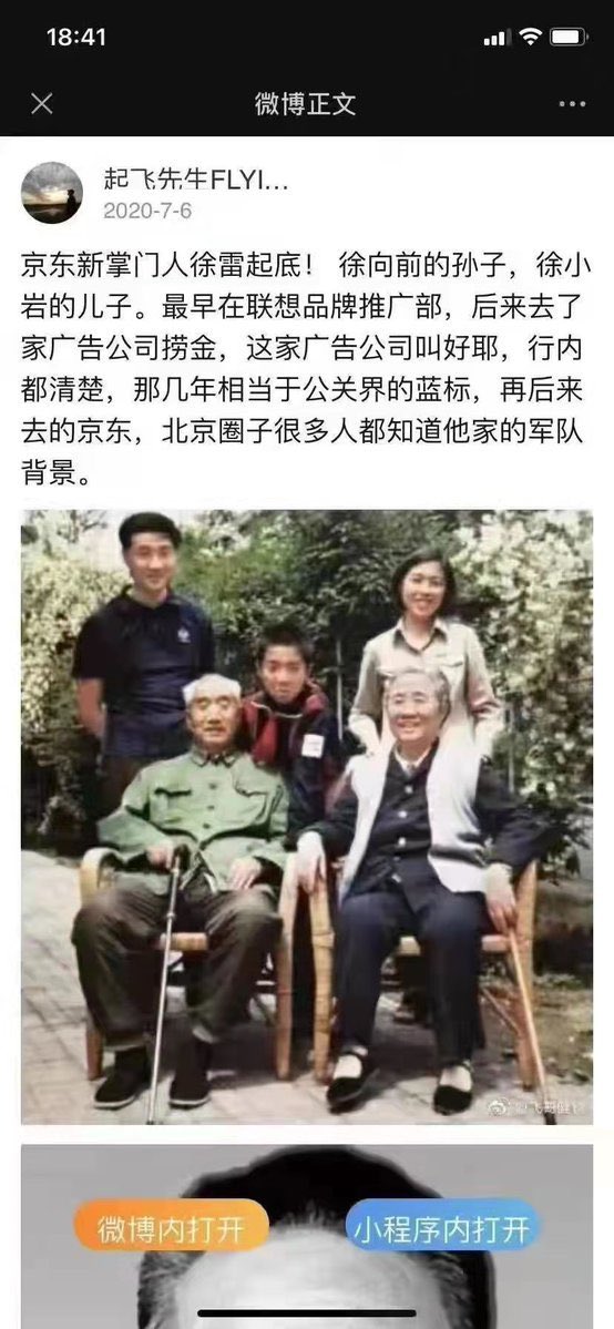 京东新掌门人徐雷起底! 是徐向前的孙子……企业果然还是在自己人手里放心!中国大的龙头企业都在红色家族手里,小一点的也都攀附着红色家族,就现在的生态环境,离开了红色家族不能生存,你明白的。