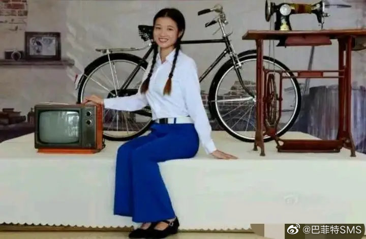 这张照片拍摄于80年代的上海,一位美丽的姑娘笑容满面的在嫁妆面前留影。