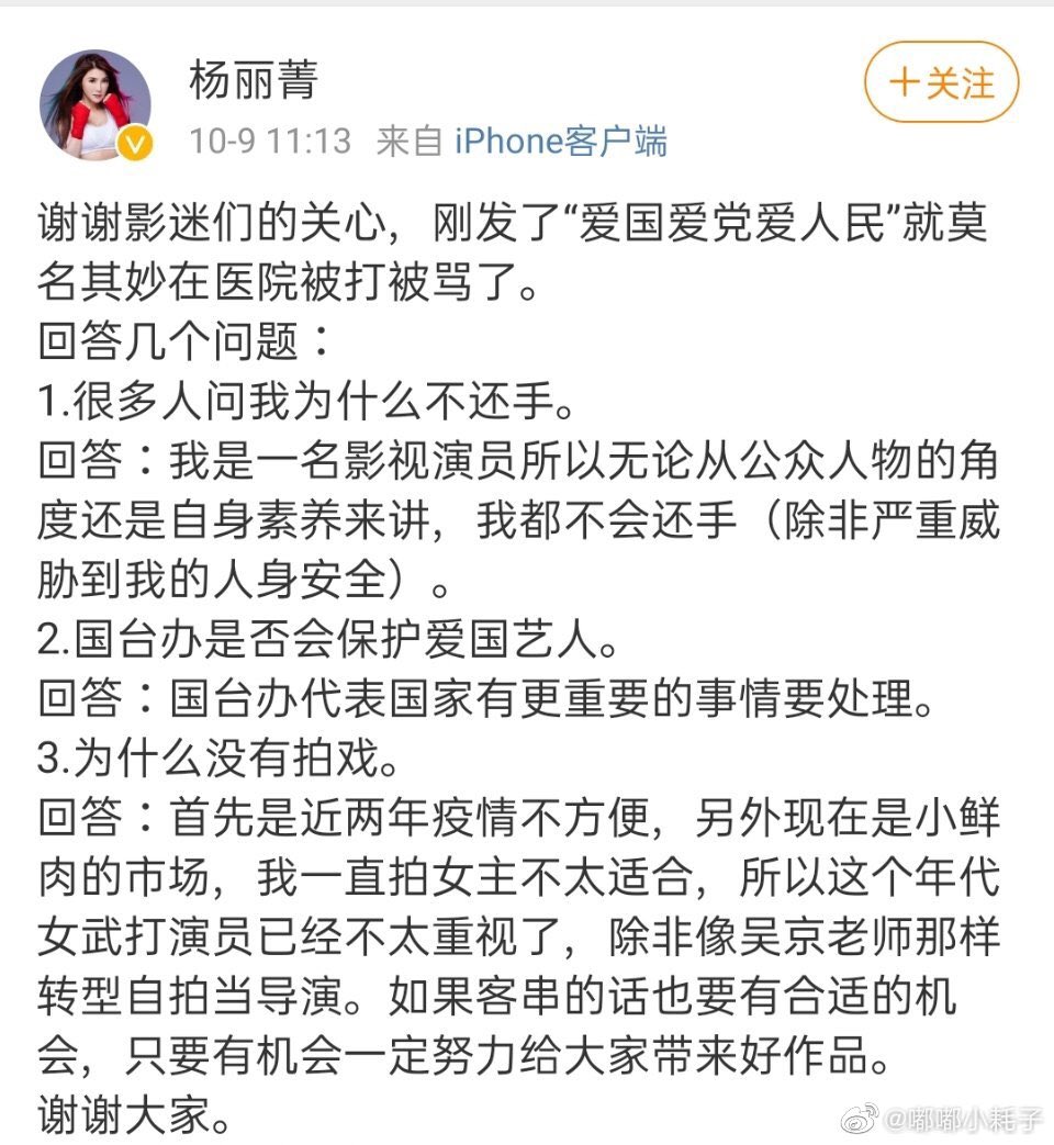 台湾女星说她因为发了爱党爱国在台湾的医院被人打了,而且过程中无人相助。今天看到墙国几个官媒发了,看了她说的这个过程,没有看出哪里是因为她爱党爱国才被打?