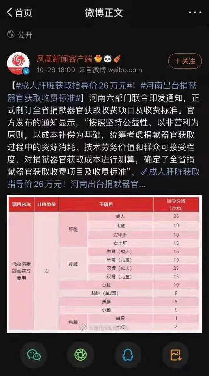 看到河南出台的器官捐献价格表,冷汗直流,寒毛倒立——这会不会引发更多的非正常死亡?