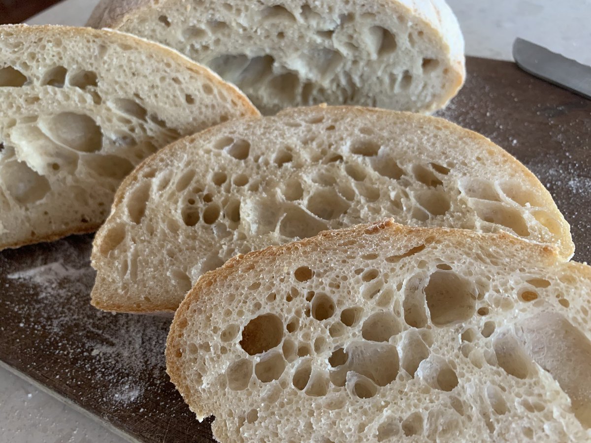 昨晚面包内部结构完美不错。今早好收成-一粒荷兰豆.