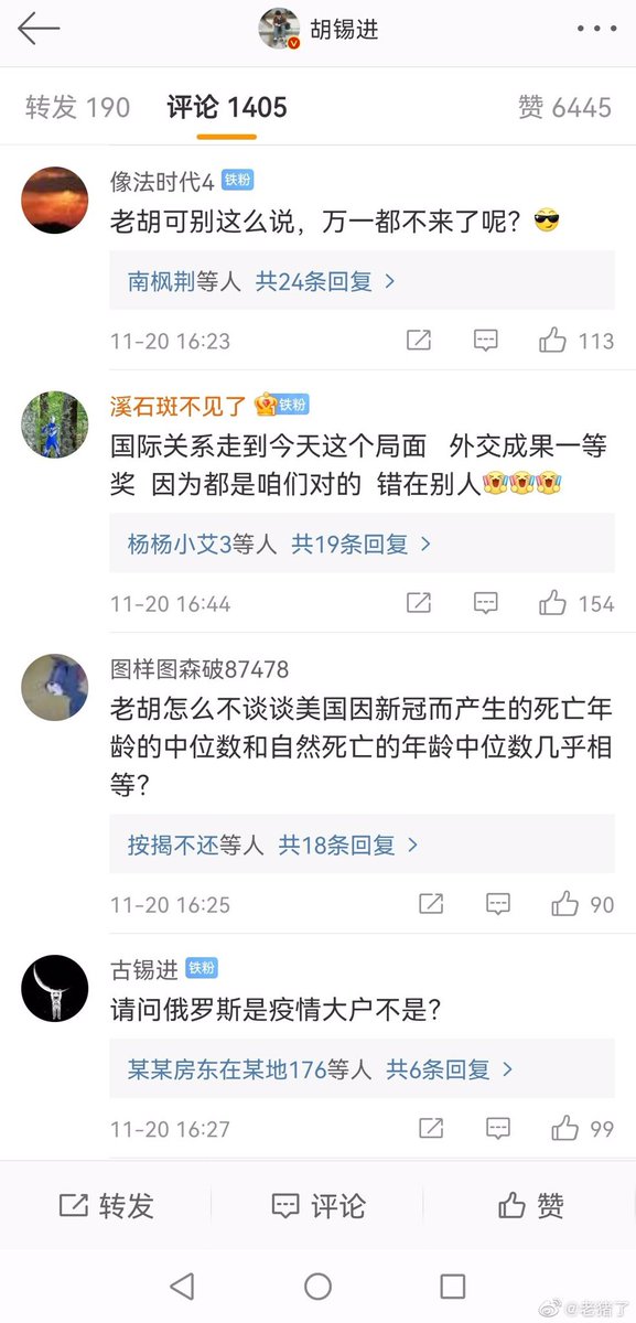 老胡一听说外国可能外交抵制冬奥,赶紧出来说我们不稀罕!很有阿Q感。