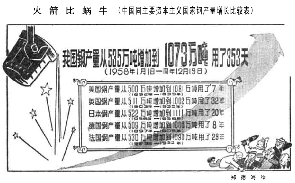 火箭比蜗牛(中国同主要资本主义国家钢产量增长比较表)-1958年12月22日《人民日报》