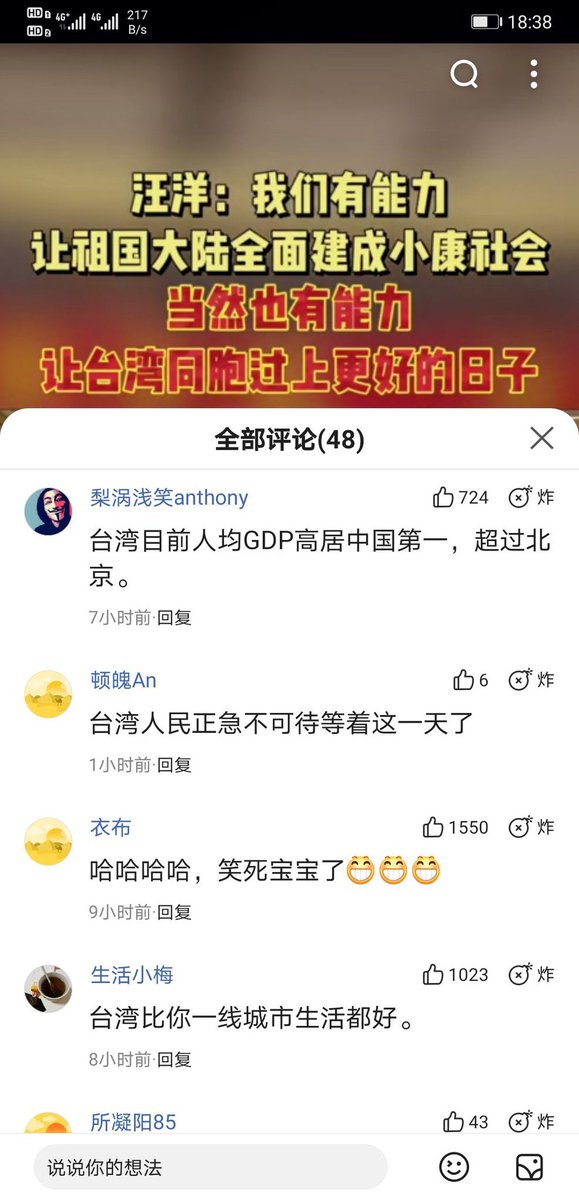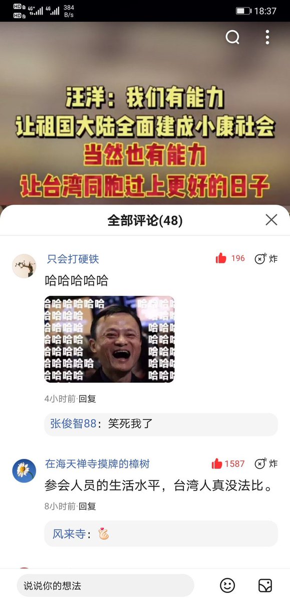 中国大陆已经消灭贫苦人口,下一步就是帮助台湾消灭贫苦人口,大陆人民都发出了喜悦的笑声。