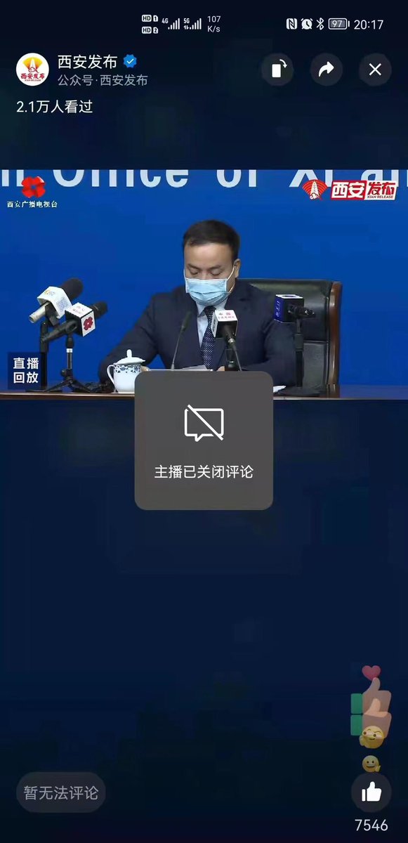 西安官媒直播领导疫情讲话,数千人发评论,说吃不到菜,可随后直播间就关闭了评论功能。连说话都被禁,吃菜岂不是奢望?
