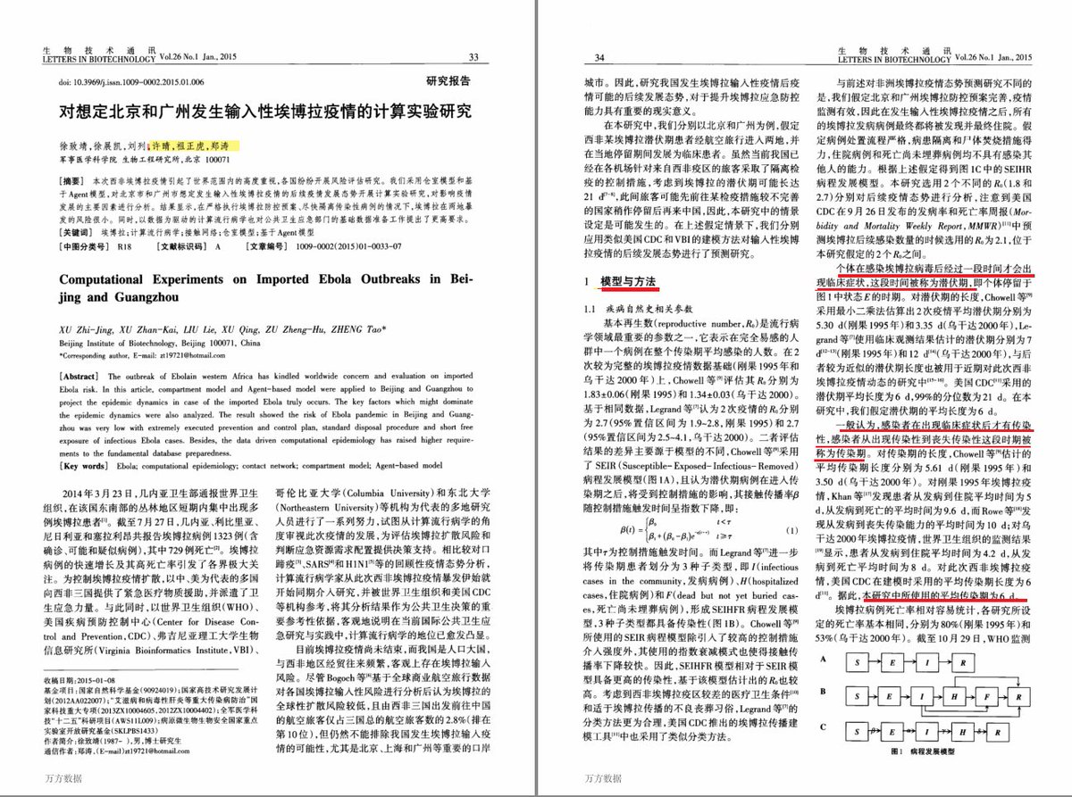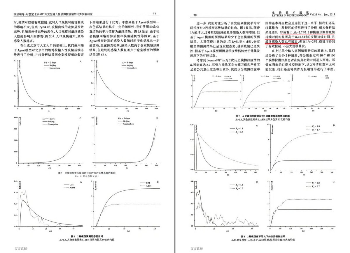 对想定北京和广州发生输入性埃博拉疫情的计算实验研究 (郑涛 军事医学科学院 生物工程研究所 2015)