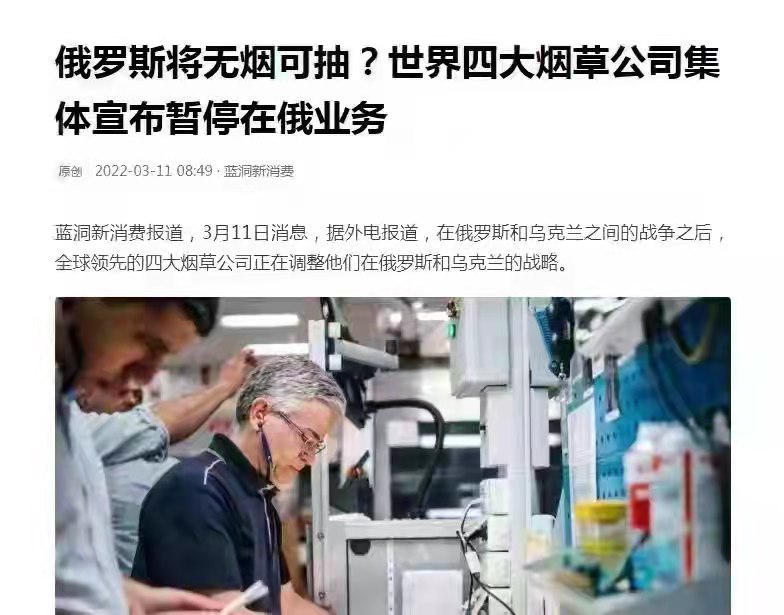 世界四大烟草公司宣布暂停在俄业务,俄罗斯无烟可抽?只能自力更生,自己种植烟草?