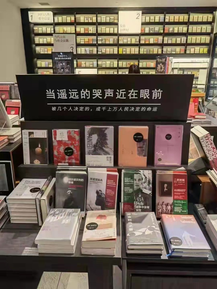 中国的一家书店默默地陈列着一系列关于乌克兰和苏联历史的书籍,包括诺贝尔奖获得者阿列克谢耶维奇的《二手时间》。