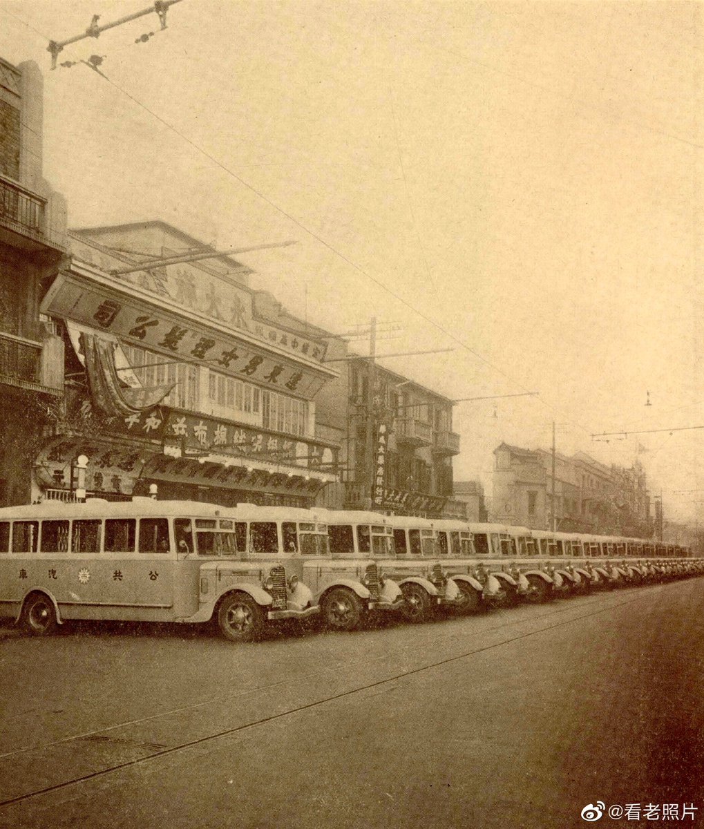 1937年,淞沪会战之前,上海的公交车和私家车整齐入位。