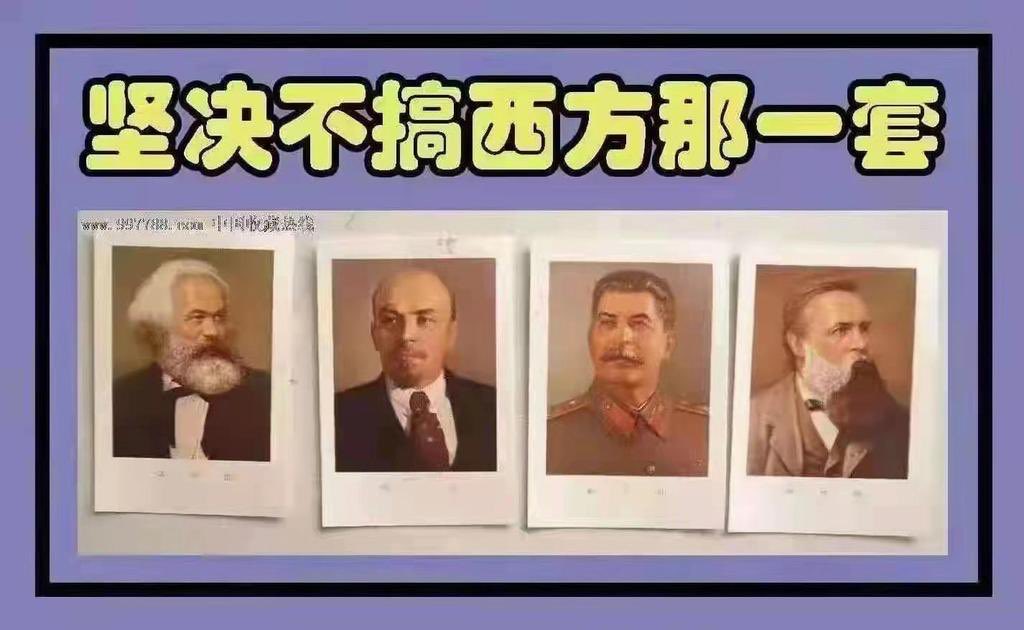 1,思想来自德国。2,模式来自苏联。3,治国来自纳粹。4,子女送到美国。5,大钱放在瑞士。然后对着俄罗斯的镰刀锤子旗宣誓:“我们坚决不搞西方那ㄧ套!”还天天对着人民喊:“西方有毒,外面有狼要吃你。”