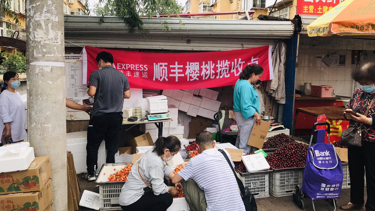 图一樱桃旁边就是快递。图二烟台啤酒2.5元一斤,装塑料袋。图四又接到了莆田系医院的关爱。
