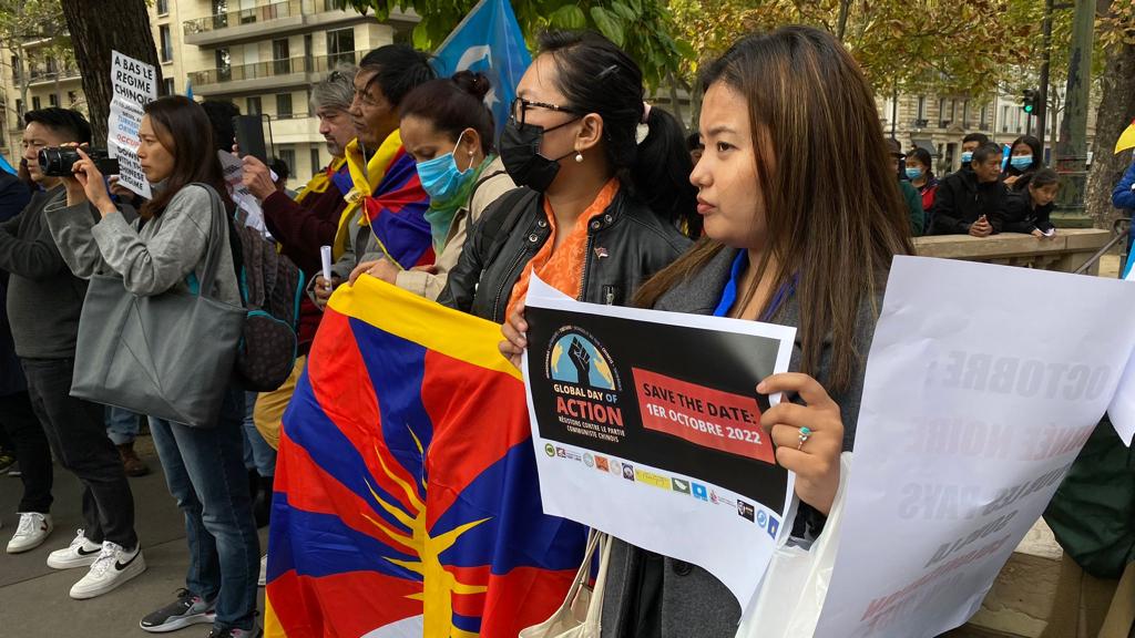 【中国 #国庆 成全球行动日!】法国巴黎多族裔抗议活动 (自由亚洲电台藏语组提供图片)