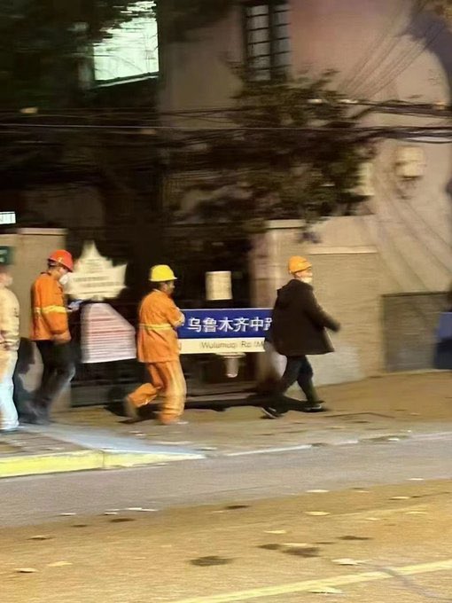 上海政府把乌鲁木齐中路的路牌拆了,以为这样就能阻止人们去那里抗议?以后那里会和天安门广场一样成为中国民主运动的又一圣地。