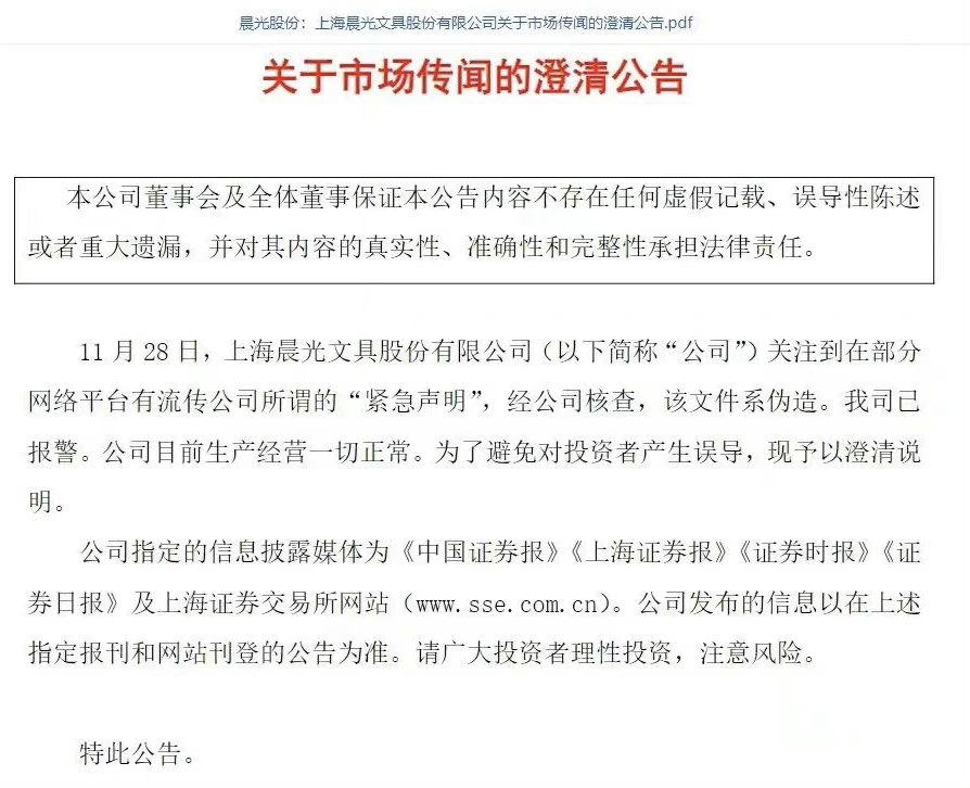 晨光文具生命:自己没有停止卖白纸,网上的东西是谣言!