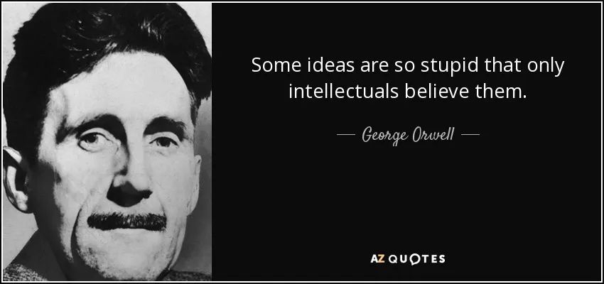 英国著名作家、《1984》和《动物庄园》作者乔治·奥威尔说:“有些观念是如此愚蠢,以至于只有知识分子才会相信。”