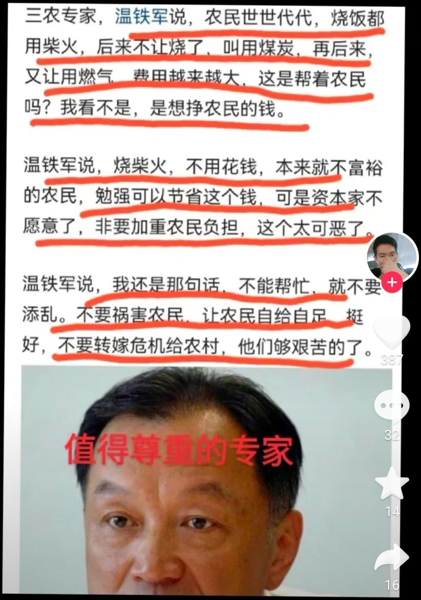 习的国师之一:温铁军,正在推进习的“新农业社区”这不,天然气也别用了,是资本家的阴谋,大家都用柴火吧看来褚阳对阿米什人生活方式的研究,可是马上都会落到实处了