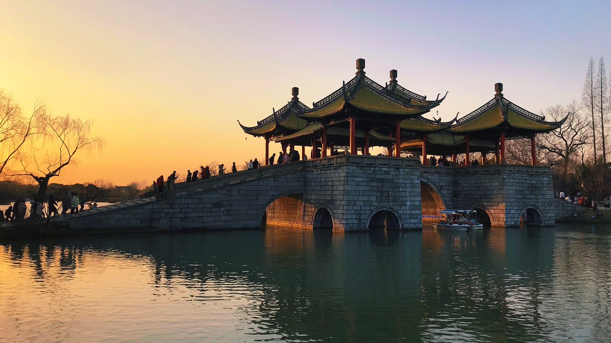 瘦西湖五亭桥图二白塔是清乾隆年间仿北京北海白塔建造。扬州