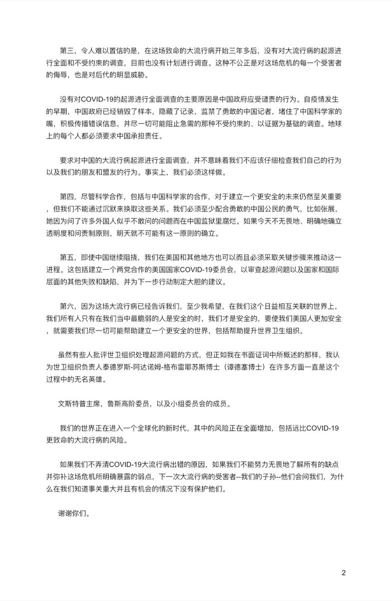 杰米·梅茨 在美国众议院举行的关于 COVID-19 起源听证会上的发言稿(中文翻译)