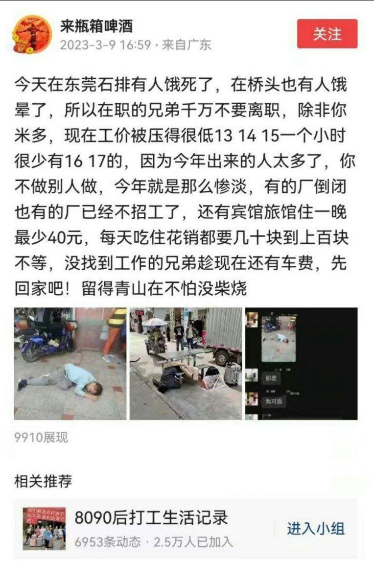 广东东莞,有人因为找不到工作,没钱吃饭,饿死在了街头