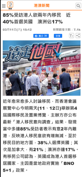 UFO启示港媒:85%受访港人欲两年内移民 近40%首选英国 澳洲占17%