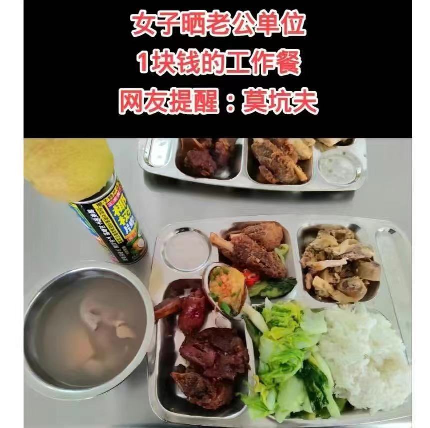 【女子晒老公单位1块钱的工作餐】网友提醒:莫坑夫