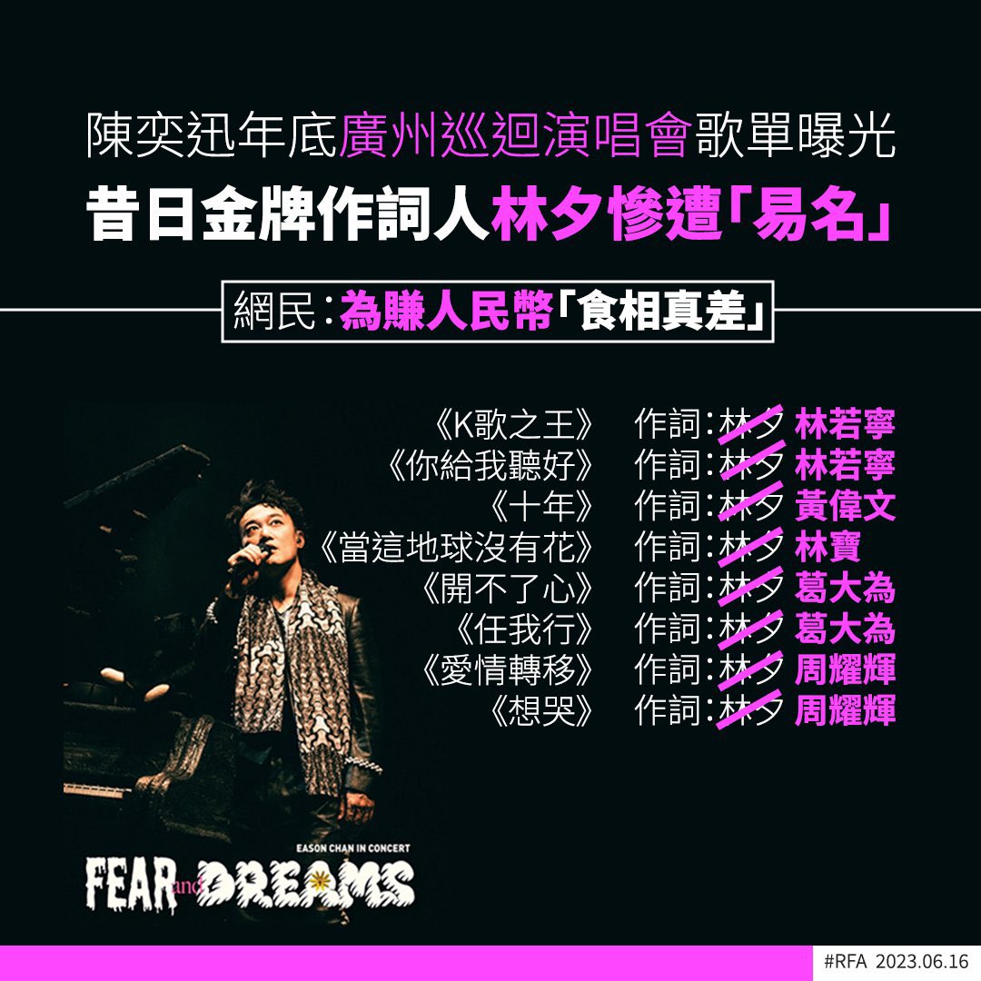 演唱会取消!陈奕迅出卖完林夕后被中共像破布一样拋弃!