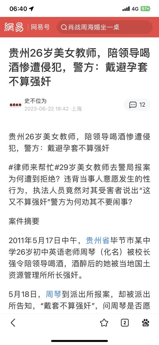 贵州26岁美女教师,陪领导喝酒惨遭侵犯,警方:戴避孕套不算强奸?挺符合二十大党中央精神的解释。强奸名称都改了,人权律师叫笨拙的求爱。警察改称:反抗不激烈,不算强奸。戴套也不算强奸!全盘阿富汗化了!