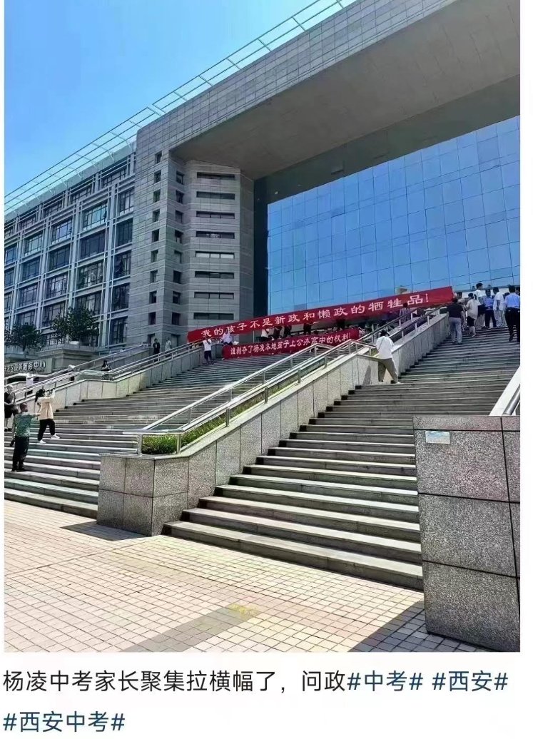 杨凌区政府大楼前,家长拉起横幅“我的孩子不是新政和懒政的牺牲品”