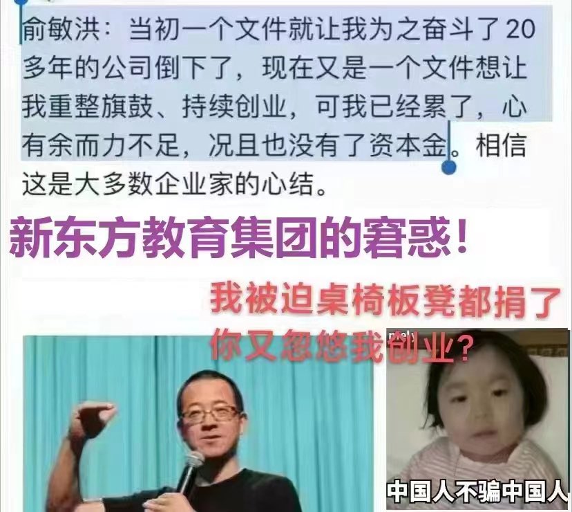 作为被包子毁掉的教育产业的标杆,俞敏洪勇敢地说出真话:“当初一个文件毁掉我创业三十年的公司,现在又一个文件让我重新创业。折腾不动了,也没有资本了。”——不受约束的权力是最大的祸害!😭😭