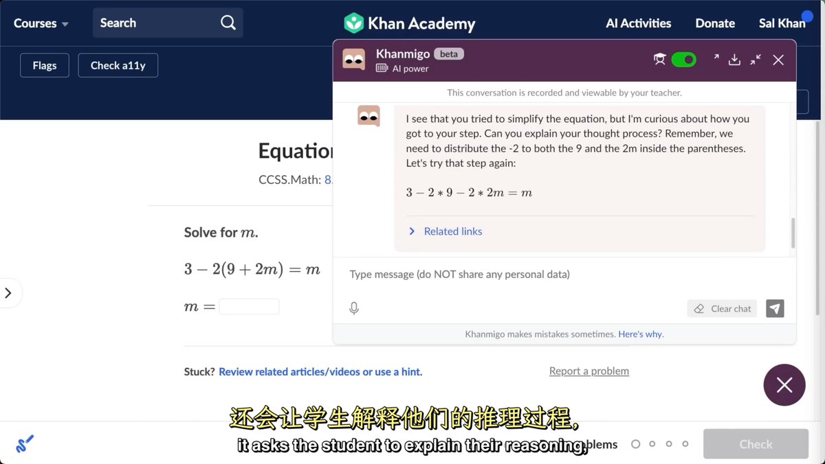 来一道 #Prompt思考题 如何能做到像 Khanmigo 这样,对于学生提交的结果,不直接给出答案,而是先判断答案是否正确,如果错误,让学生解释他们的推理过程,纠正概念上的错误。