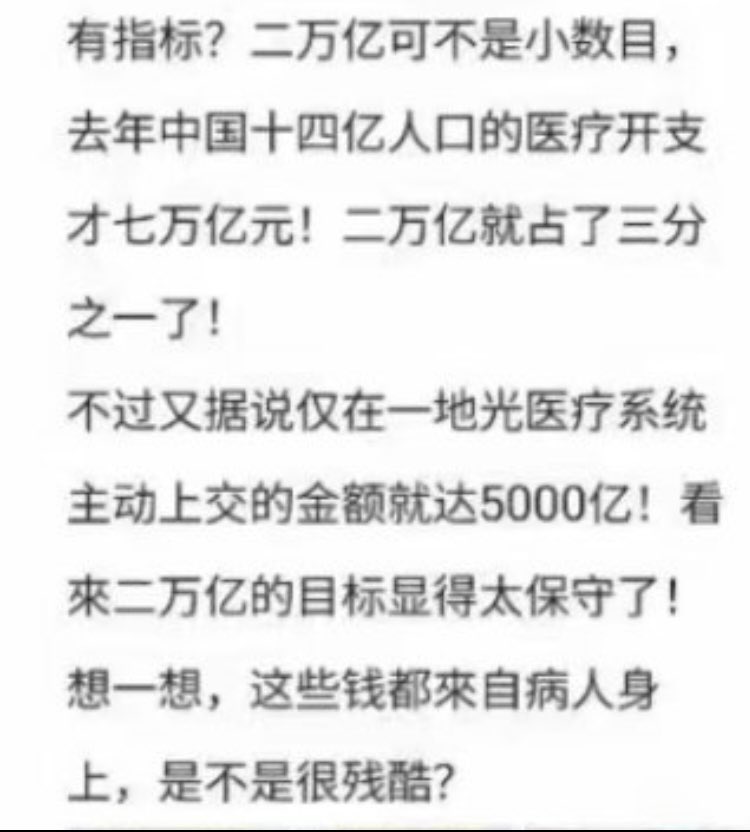 医疗领域反腐指标是两万亿!这些钱都是病人的血汗钱!