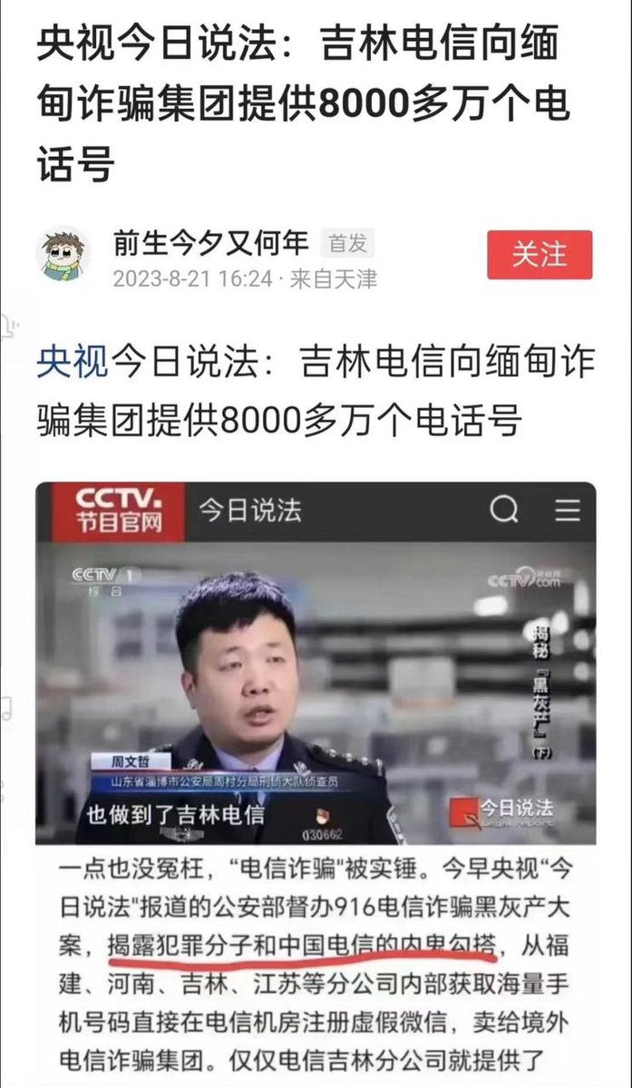 实锤!吉林电信向缅甸诈骗集团提供8000多万个电话号码。当国人必须实名注册电话号码时,电信竟然如此胆大妄为。网友:实名制的优势不就体现出来了嘛,其它国家的政府哪能卖出这么完整的数据。中共才是最大老板!