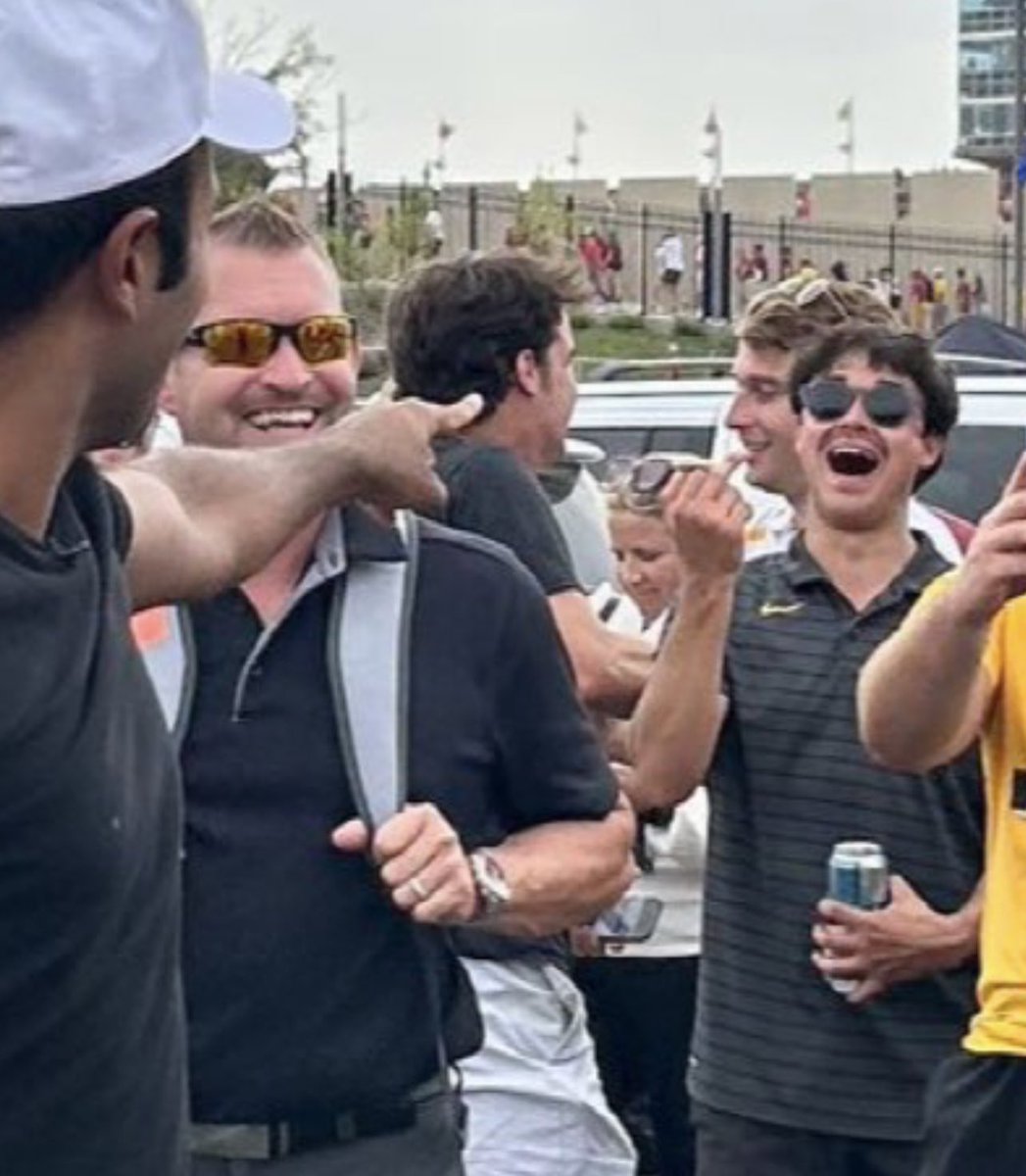 Vivek Ramaswamy gets a warm greeting from a fan giving him a one-finger salute at the Iowa - Iowa State game.