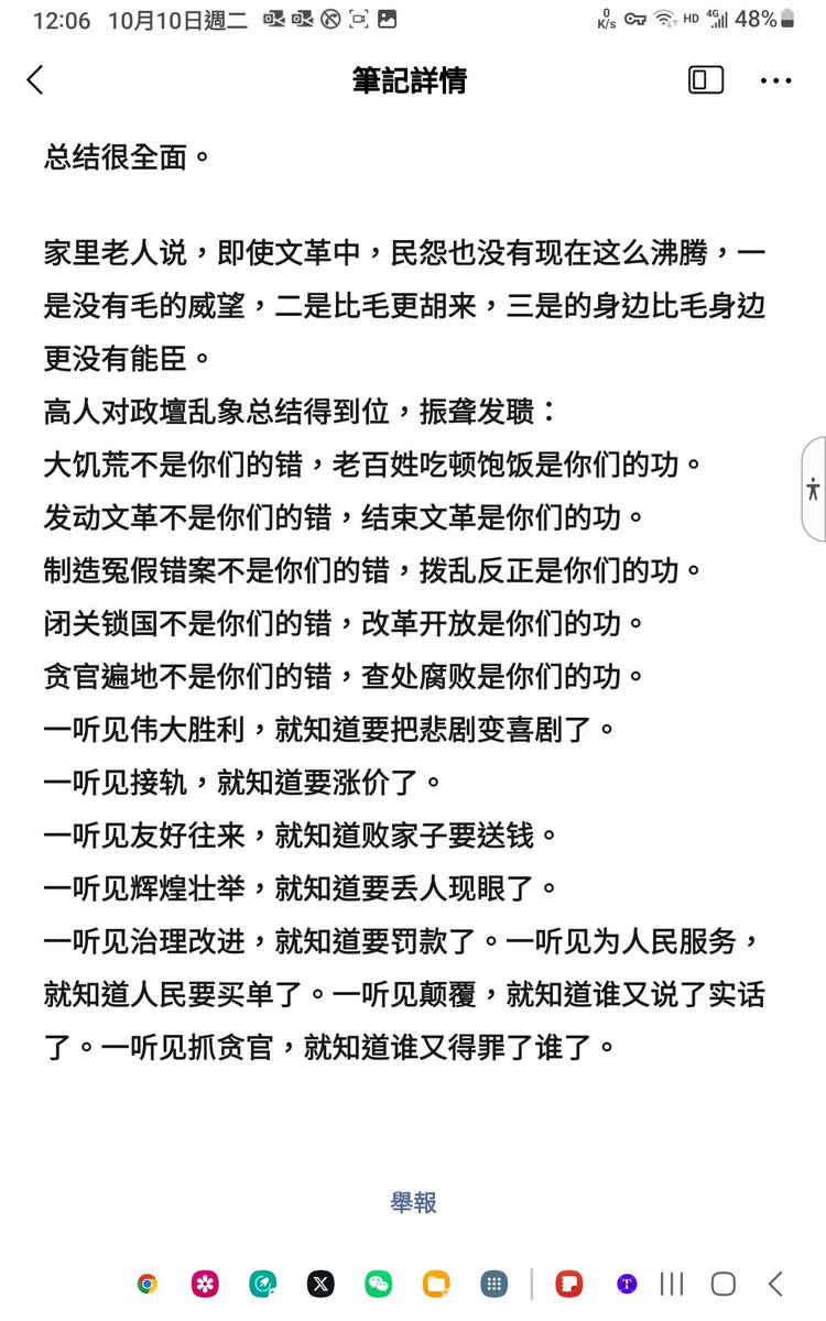 不少推友质疑这位老人没经历文革,以为毛时代不敢有民怨。殊不知9.13事件后,毛的神话已开始解构。若无民怨,1976年怎会发生4.5运动?同理,若无民怨,2022年怎会发生白纸运动?