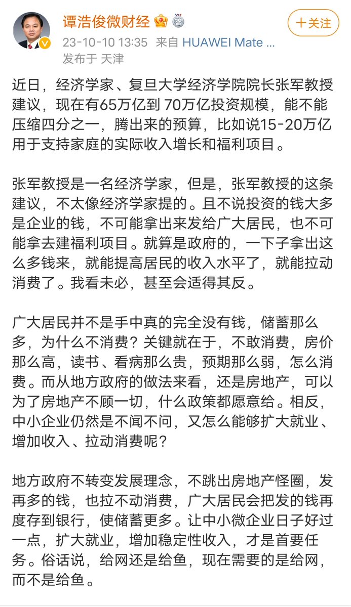 复旦经济学教授质问中国政府:各种投资浪费的钱,为什么不给老百姓?