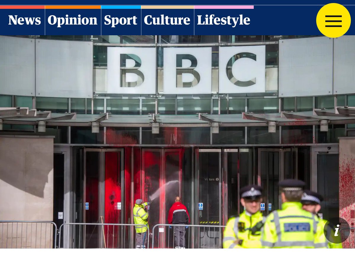 昨天英國國防部長批評BBC不願意稱哈瑪斯成員為恐怖份子,今天英國哈瑪斯支持者朝BBC總部潑紅油漆。這都是「忠誠不絕對,絕對不忠誠」惹得禍。