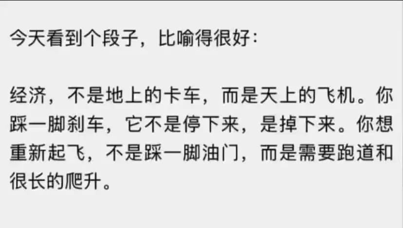 经济是飞机,不是卡车,不是你想倒车就倒车的。