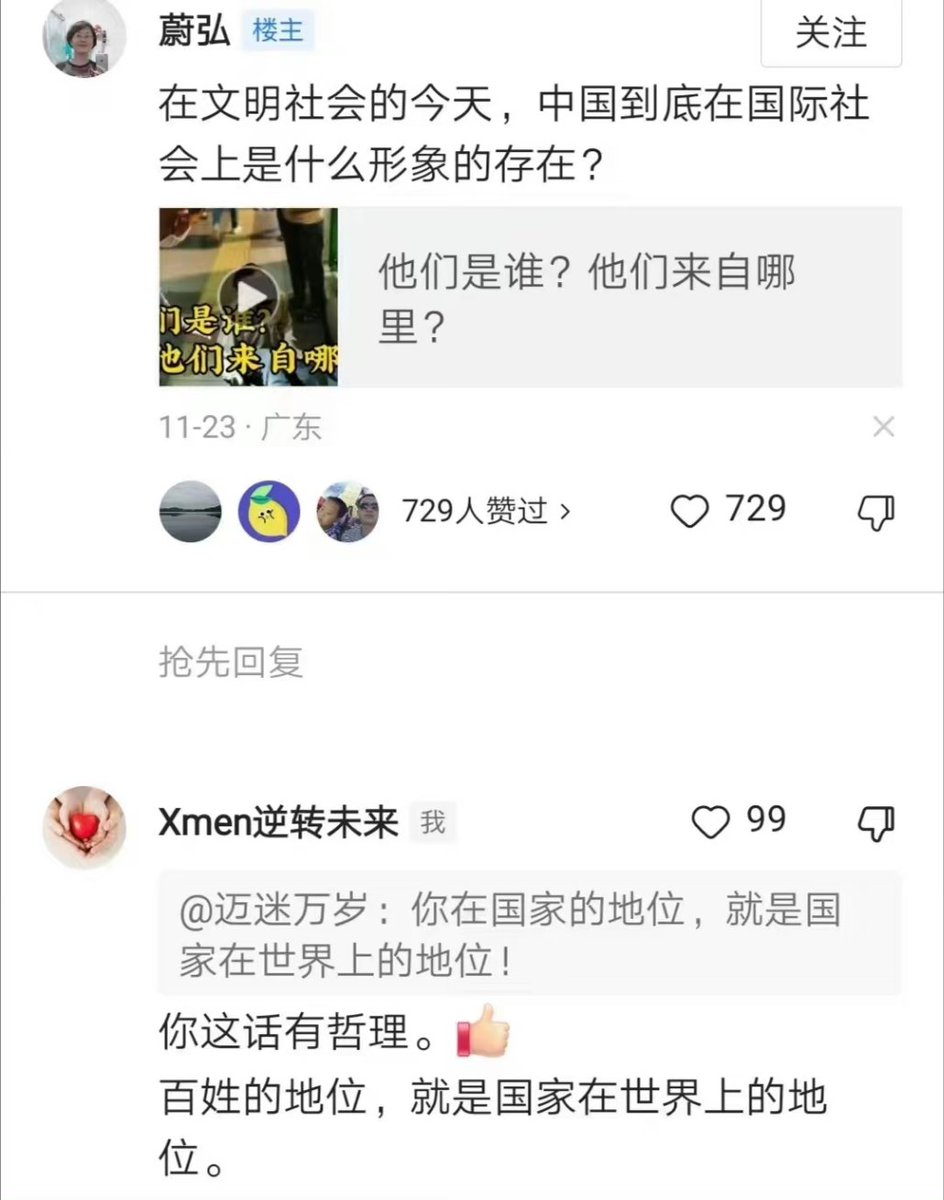 网友锐评:老百姓在国家的地位越高,国家的国际地位才越高;反之亦然。