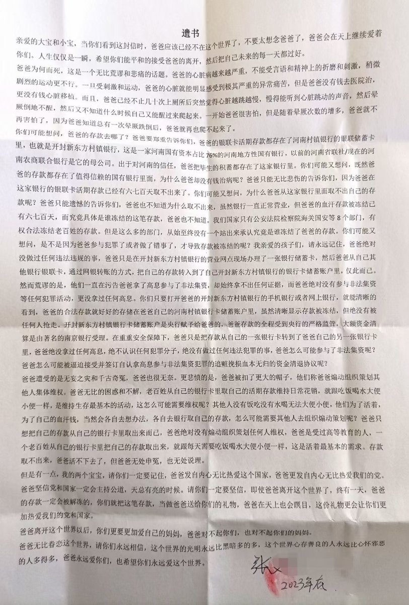 网友投稿,村镇银行储户留下遗书。各位网友能否联系上这位储户?帮忙劝劝