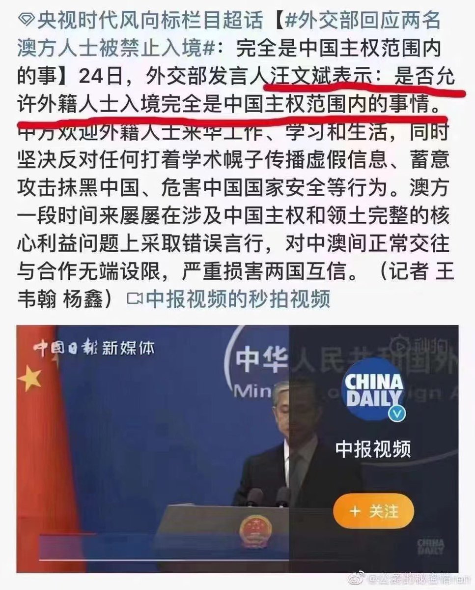 中国是否允许外籍人士入境完全是中国主权范围内的事,外国是否允许中国人入境也是中国主权范围内的事,反正只要跟中国有关系,中国都有权介入。