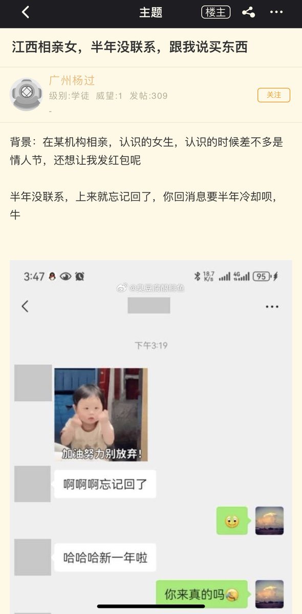 半年没联系的江西相亲对象突然联系并讨要过年礼物。