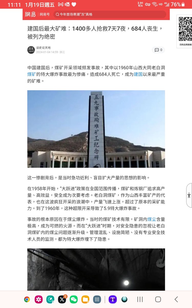 "网易【建国后最大矿难:1400多人抢救7天7夜,684人丧生,被列为绝密】火星网友这里的历史主要分为两个部分:一部分,忘记就是犯罪,一部分,提起就是犯罪