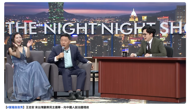 王志安持观光签证赴台,但在台湾停留期间参加脱口秀“贺珑夜夜秀”录影,对台湾的总统大选和政治发表评论。https://t.co/Gb7FfkIPEh